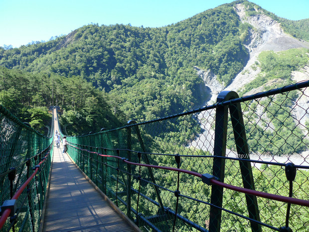 重建後的奧萬大吊橋,跨越兩山之間,能夠居高臨下,何嘗不是條好漢